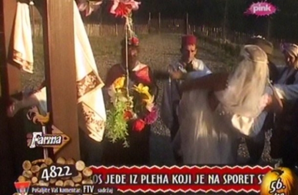 Sloba se pokazao kao dobar strelac jer je skinuo jabuku bez problema, a u skladu sa tradicijom pevač je preneo mladu preko praga, a ona je zafrljačila sito preko kuće.