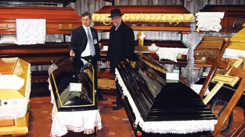 Dok na svetskim sajmovima ove vrste izlagači nude mrtvačke kovčege od kože i papira, nadgrobne spomenike u obliku motocikala, kofera, stolova za stoni tenis, priveske u kojima možete čuvati DNK pokojnika, kod nas je sve još vrlo staromodno. Ne tako veliki broj proizvođača nadmetao se ko će izložiti veći broj sanduka od topole ili hrasta, a posetioci su samo razgledali. Niko se nije usudio da isproba neki izloženi primerak, iako ni to nije bilo zabranjeno.